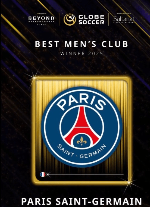 2025年环球足球奖颁奖典礼再传喜讯,巴黎圣日耳曼毫无悬念当选年度最佳男足俱乐部。这一荣誉是对巴黎本赛季统治级表现的最高认可——在2025年的赛事征程中,他们先后将欧冠、法甲、法国杯、法超杯、欧超杯和洲际杯六项冠军收入囊中,成就年度“六冠王”伟业,跻身巴萨、拜仁之后足坛第三支达成此成就的球队。从昔日欧冠常客到如今的全冠王者,巴黎用一个赛季的辉煌,正式开启属于自己的王朝时代。